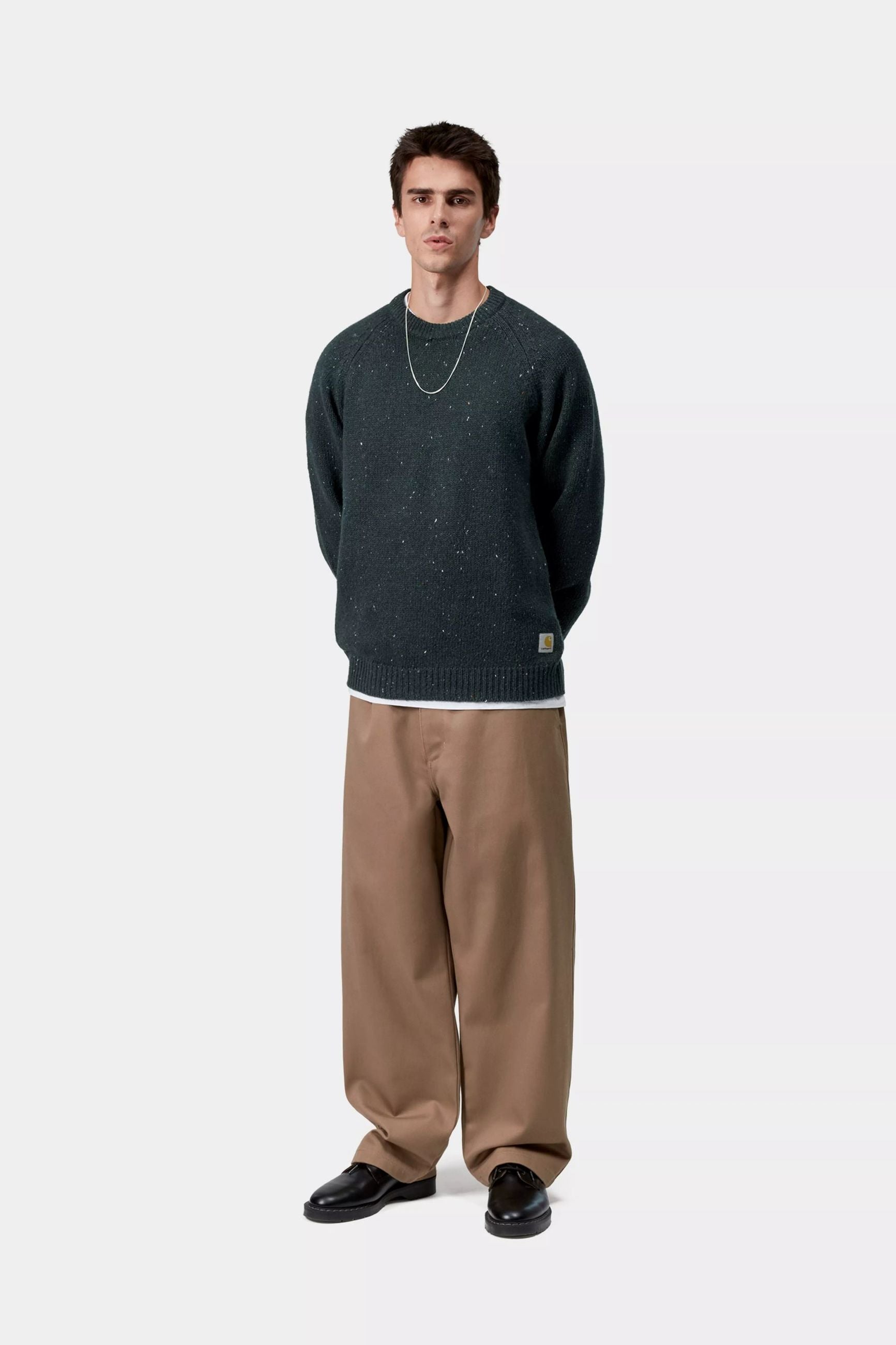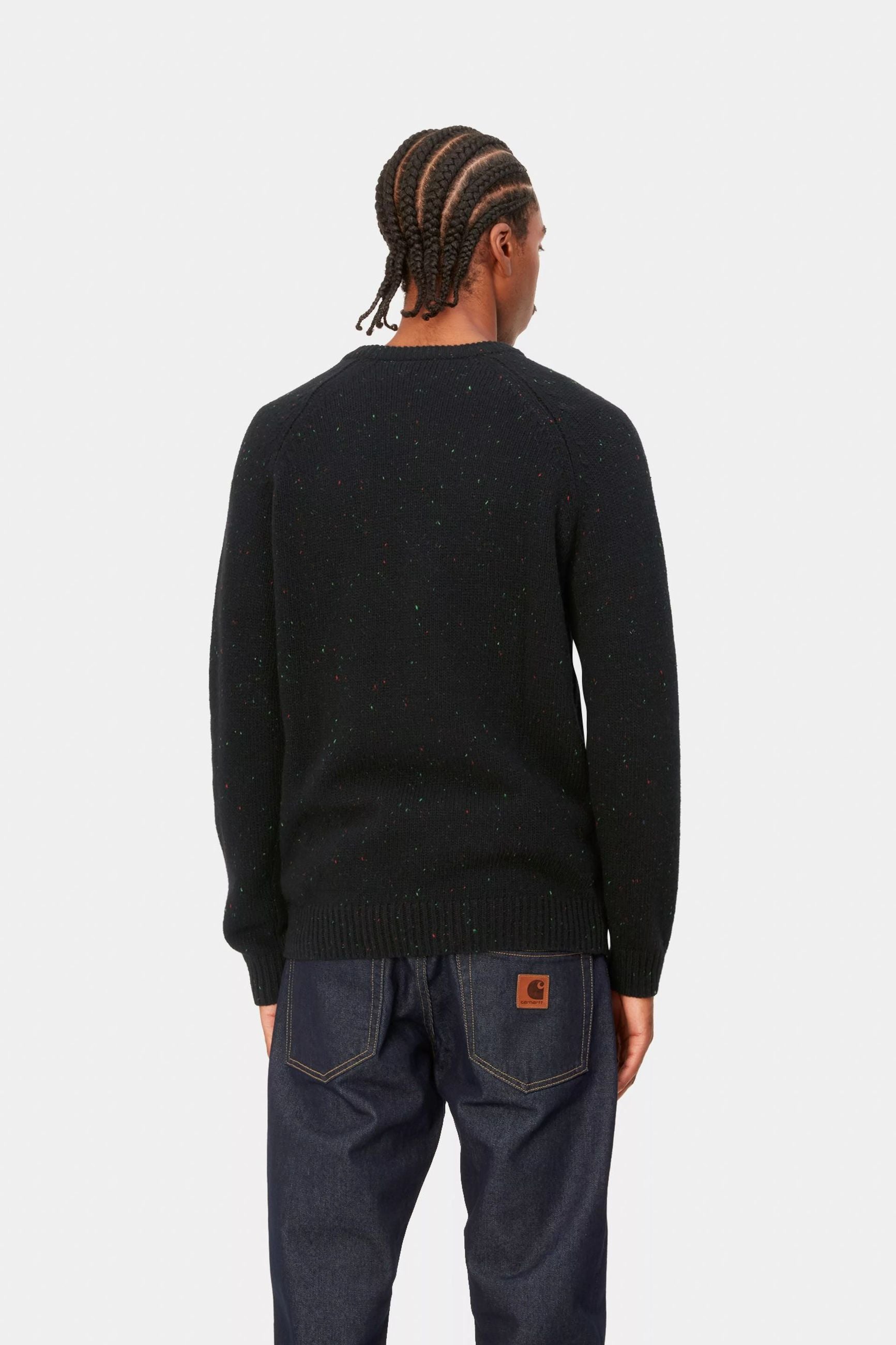 L’Anglistic Sweater è realizzato in un caldo misto di lana di agnello, cotone e acrilico, è caratterizzato da vestibilità normale e presenta maniche raglan. La maglia è inoltre caratterizzata da un aspetto vagamente puntinato ed è impreziosita da un’etichetta quadrata in tessuto in corrispondenza dell’orlo.