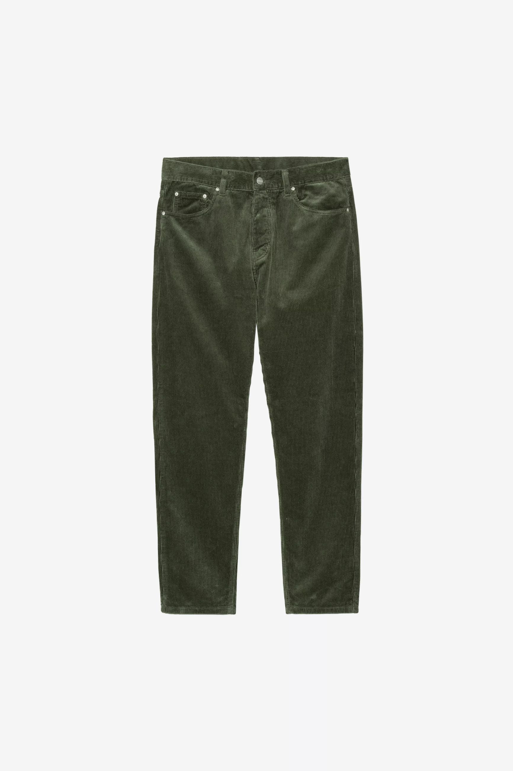 I Newel Pant sono classici pantaloni a cinque tasche, con un rilassato taglio contemporaneo stretto in fondo. Qui sono stati realizzati in velluto a coste 'coventry' 8-wales, un tessuto pesante con coste di larghezza media. Presenta un'etichetta Carhartt WIP intessuta sulla tasca posteriore destra.