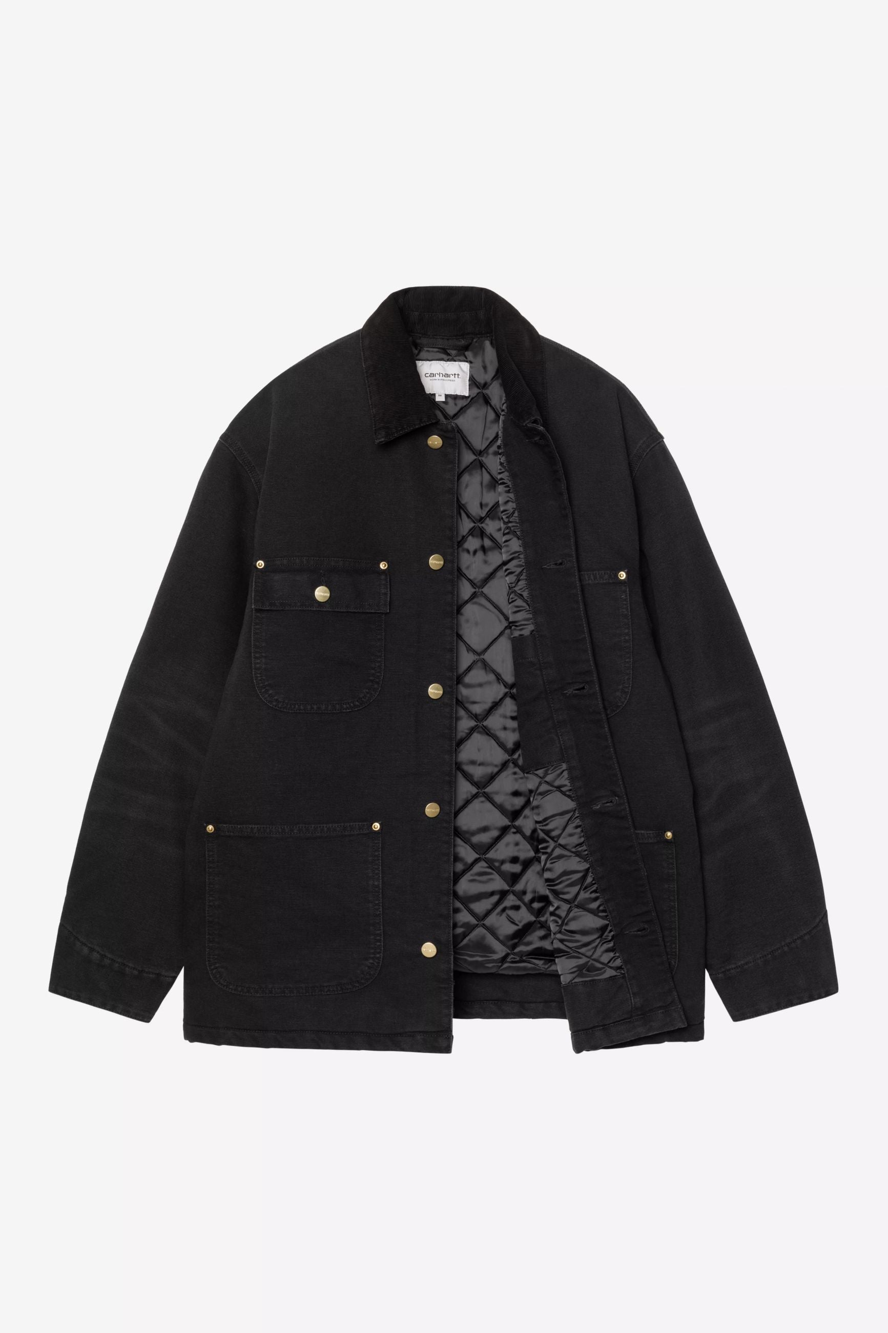 La OG Chore Coat è caratterizzata dalla nostra originale vestibilità ampia e realizzata in pesante tela di cotone Dearborn. Il capo presenta anche una calda fodera matelassé. Il colletto in velluto e le tasche applicate sul davanti sono morbidi al tatto, mentre la tripla impuntura e i rivetti garantiscono una maggior resistenza. Rifinisce il modello un’etichetta quadrata in tessuto.