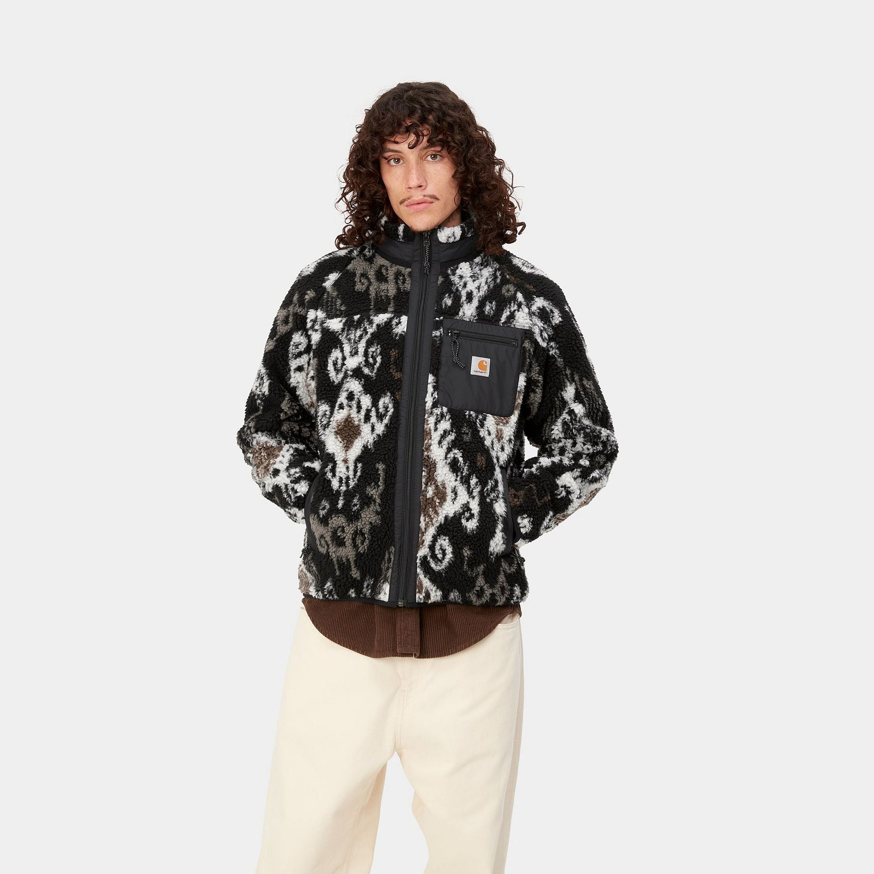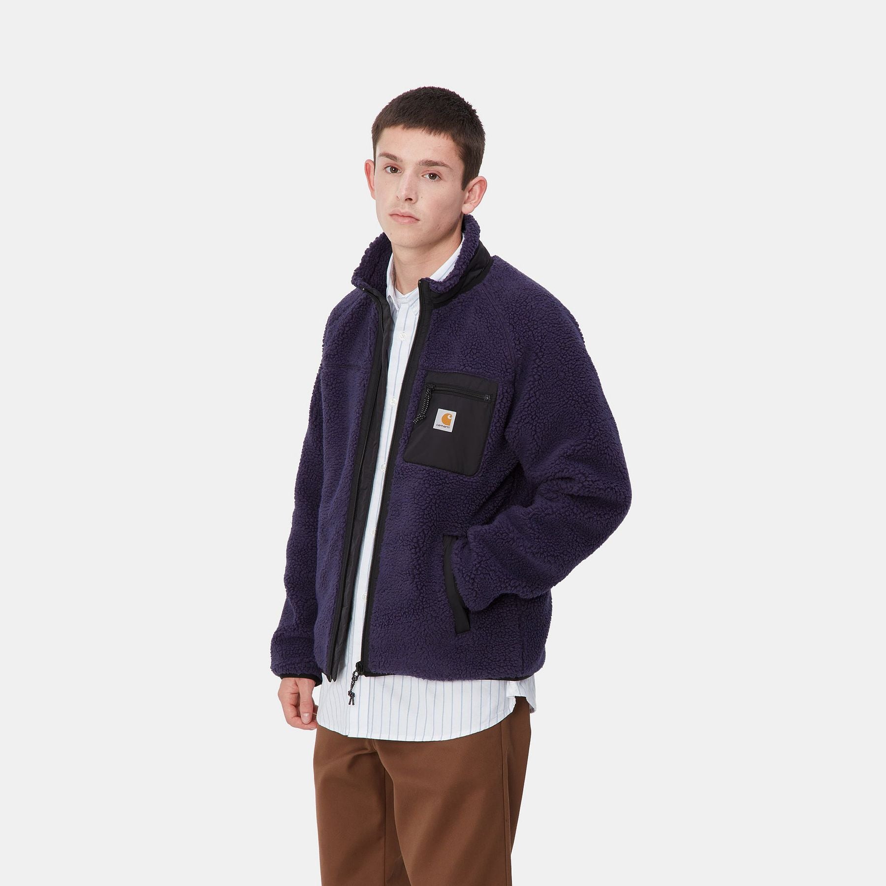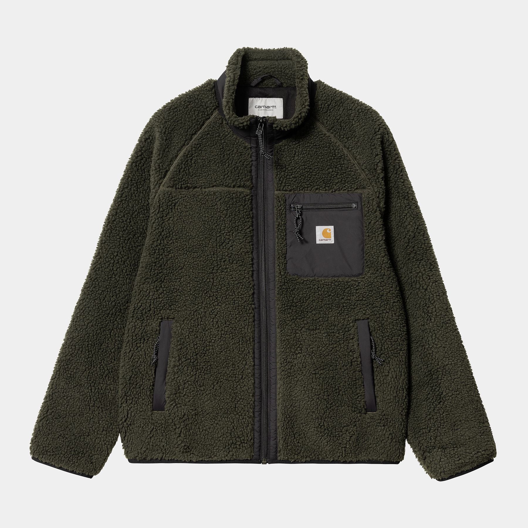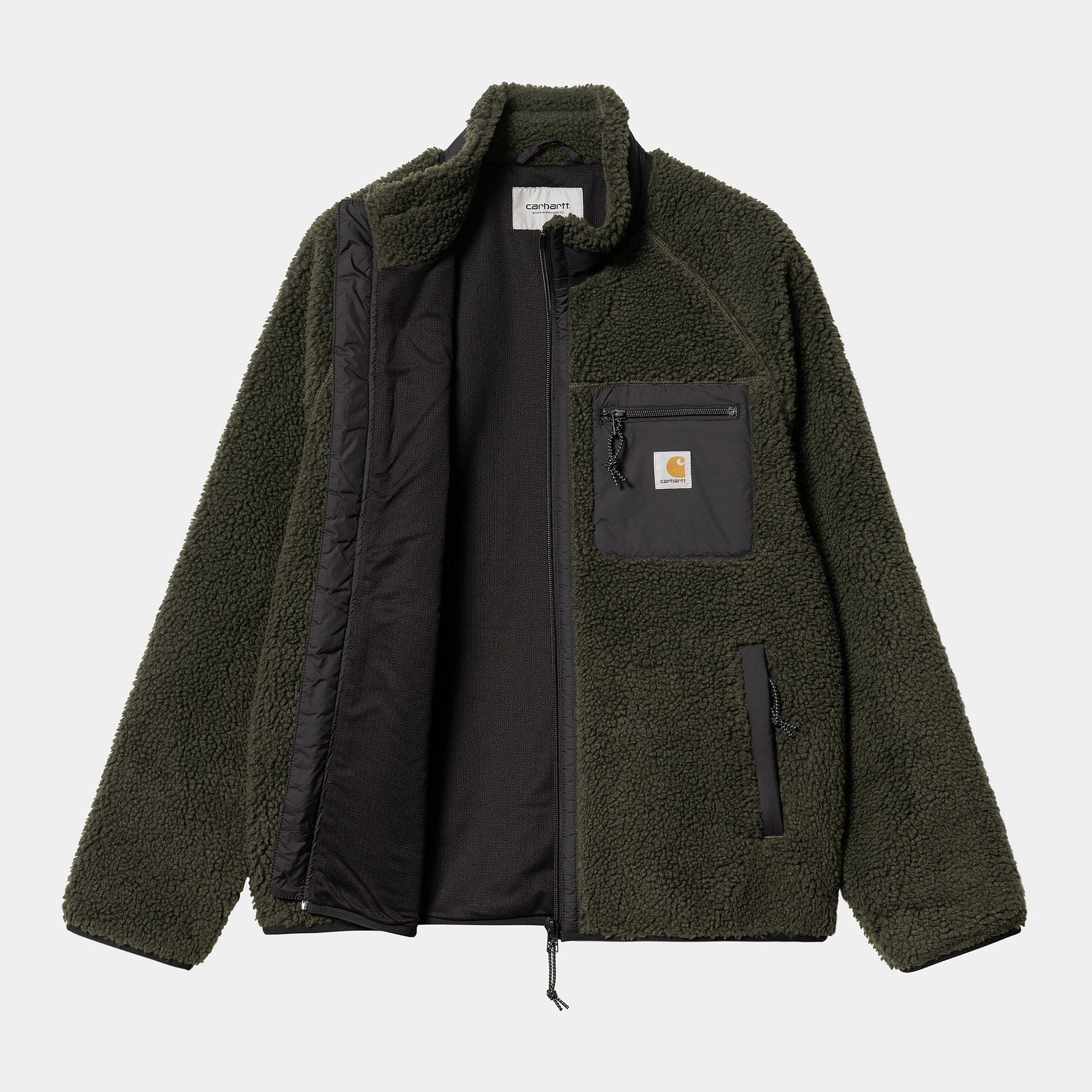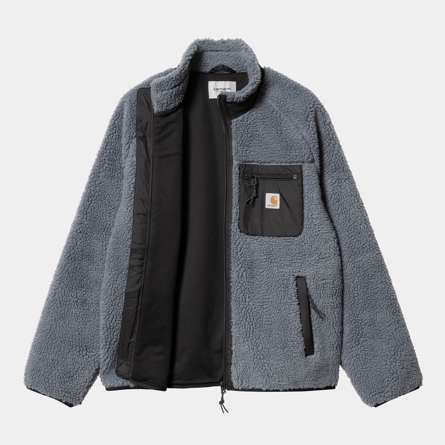La Prentis Liner è realizzata in pile pesante 10,03 once e presenta dettagli in taffetà di nylon a contrasto e un solo taschino sul petto con etichetta Carhartt WIP. È inoltre caratterizzata da imbottitura a rete per una buona traspirabilità.