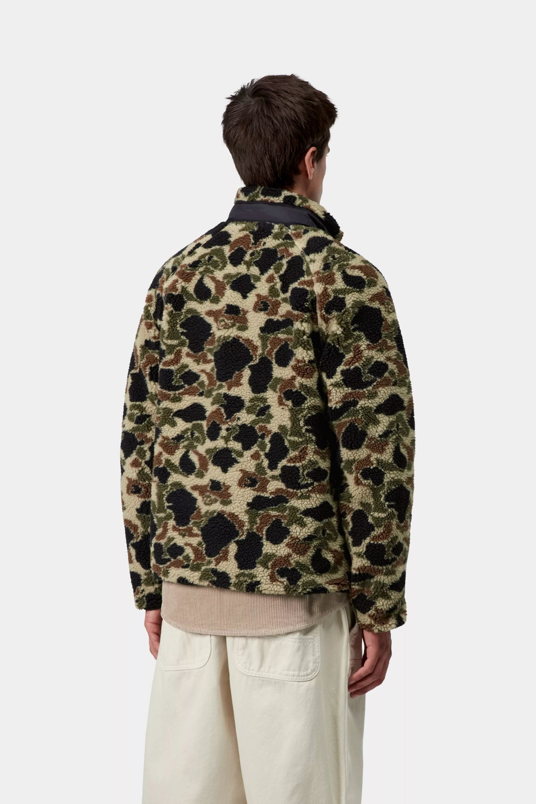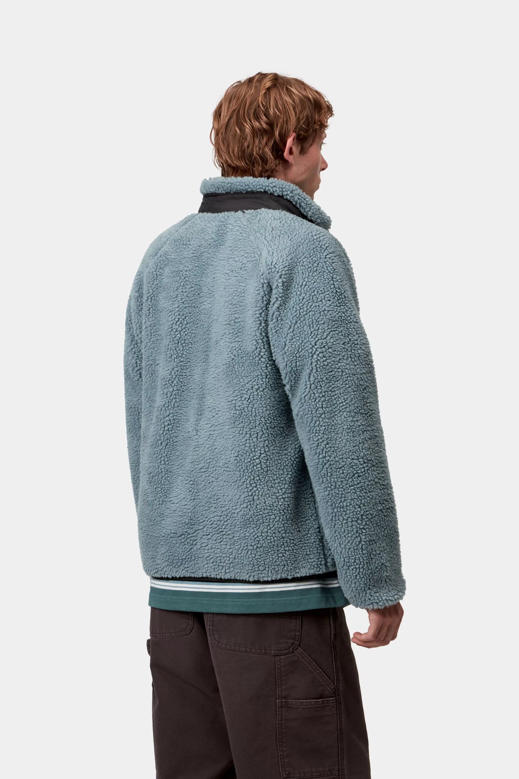 La Prentis Liner è realizzata in pile pesante 10,03 once e presenta dettagli in taffetà di nylon a contrasto e un solo taschino sul petto con etichetta Carhartt WIP. È inoltre caratterizzata da imbottitura a rete per una buona traspirabilità.