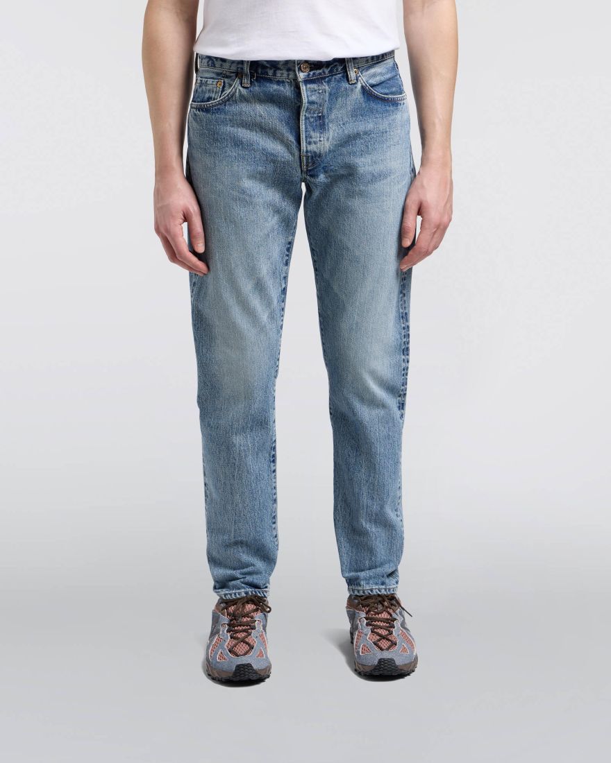 The Regular Tapered Jeans are produced in Japan from a 14oz Kurabo Recycle Red Selvage Denim Fabric, made of 100% cotton. Featuring a regular tapered fit, mid rise, and a classic five-pocket design with a button fly, they offer a clean and modern silhouette. The Blue Light Used wash gives the denim a soft, gently worn-in appearance. Finished with a 100% pulp paper patch on the back, this piece reflects the craftsmanship and attention to detail characteristic of EDWIN's 'Made in Japan' collection.